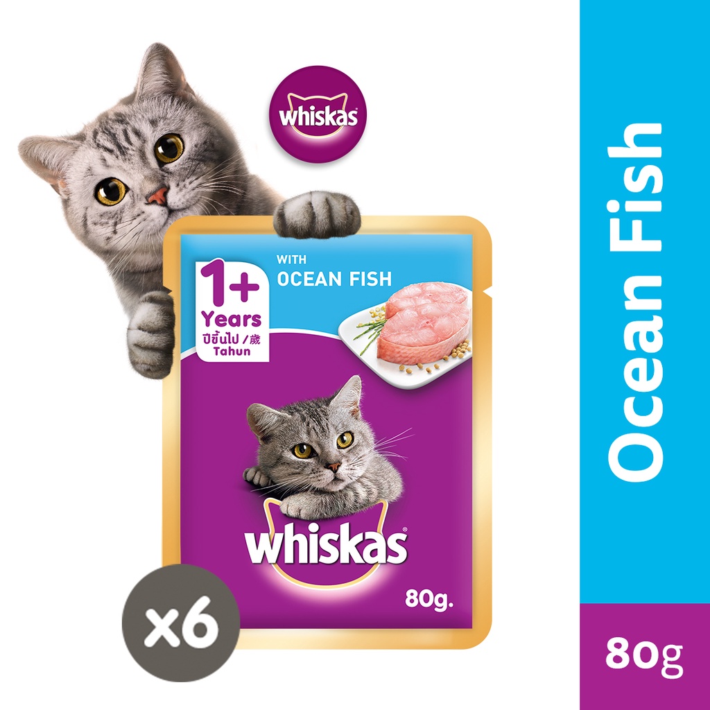 WHISKAS Cat Food Wet Pouch Ocean Fish Flavor Wet Food for Cats Aged 1
